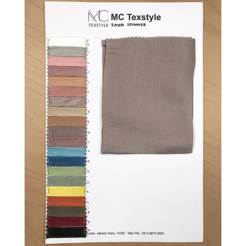 Terbuat dari bahan dasar rayon, Kain Rayon Shimmer menjadi salah satu bahan premium yang dijual MC Texstyle. Memiliki beberapa karakteristik dan kelebihan yang cukup disegani membuat rayon shimmer jadi primadona brand fashion ternama. Berikut karakteristiknya: